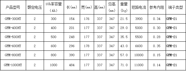 1. 容量范圍(C10):300Ah~1000Ah(25℃);